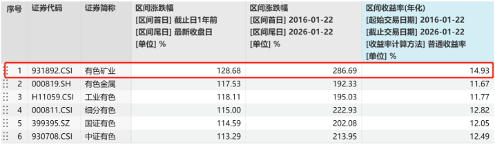 [聚焦上游资源品——有色矿业指数十年年化涨幅近15%]